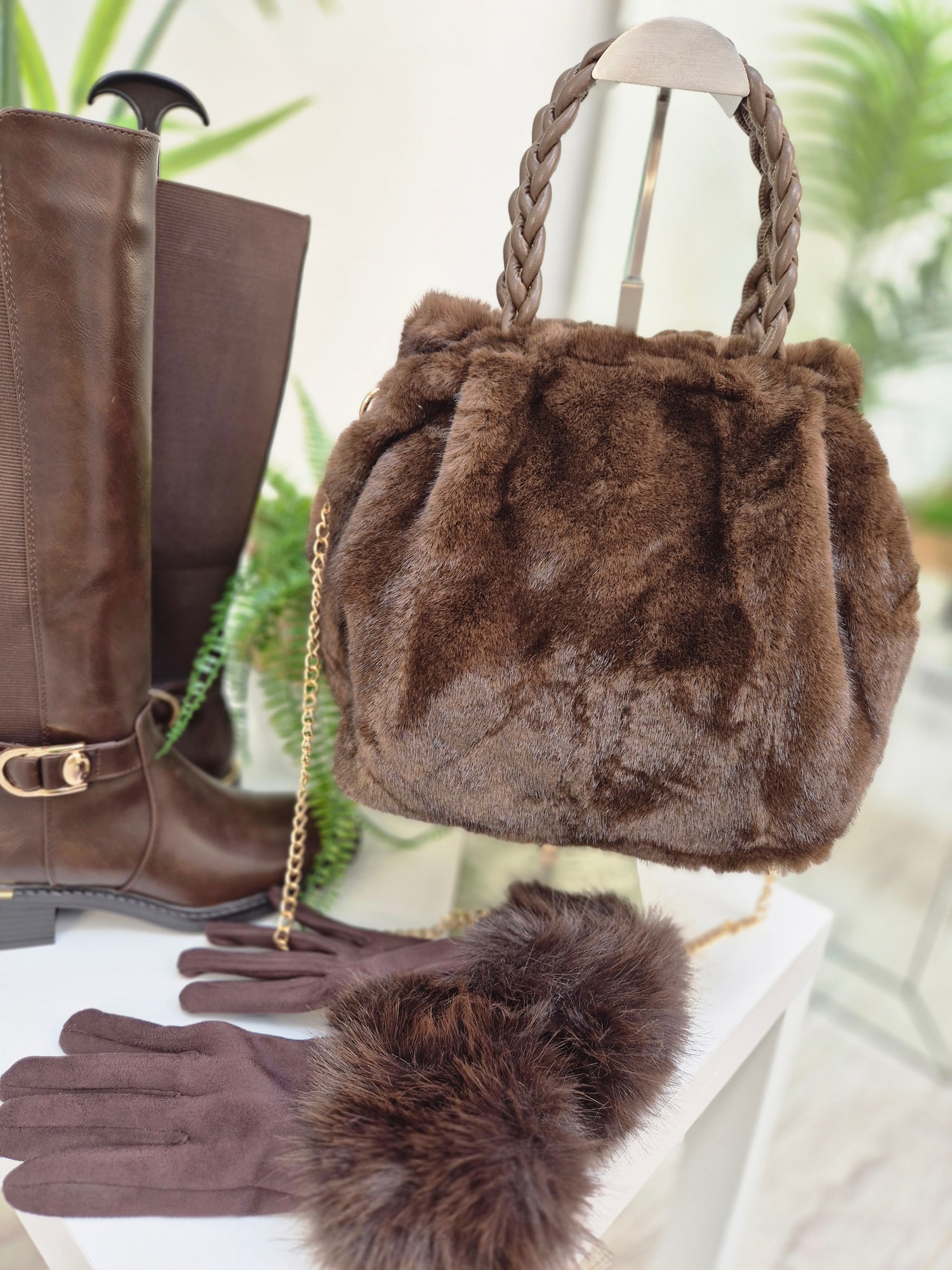 Oslo Faux Fur Cardigan (choose your Size) - Chocolate